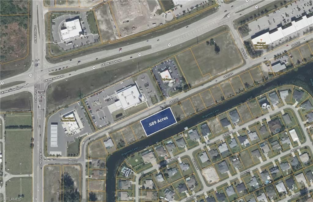 Positioned in one of Cape Coral's fastest-growing commercial areas, this 30,000+ square foot site offers an outstanding development opportunity along the highly active Pine Island Road corridor. The property sits on a freshwater canal and is fully equipped with city water, sewer, and natural gas, providing the infrastructure needed for a wide range of commercial uses.This combined parcel site offers excellent flexibility and is well-suited for flex space, professional or medical office, restaura...Positioned in one of Cape Coral's fastest-growing commercial areas, this 30,000+ square foot site offers an outstanding development opportunity along the highly active Pine Island Road corridor. The property sits on a freshwater canal and is fully equipped with city water, sewer, and natural gas, providing the infrastructure needed for a wide range of commercial uses.This combined parcel site offers excellent flexibility and is well-suited for flex space, professional or medical office, restaurant, retail development, or even the opportunity to build custom 'caves or hobby garages with friends.Conveniently located parallel to Pine Island Road, the property sits directly behind the new Cape Coral Post Office, Bob Evans, 7-Eleven, and Take 5 Oil Change, and just north of Chiquita Boulevard. The site benefits from easy access and steady traffic flow along 4th Street, making it an ideal location for businesses seeking strong visibility and accessibility.With surrounding commercial growth continuing at a rapid pace, this property represents a rare opportunity to secure land in one of Cape Coral's most active and expanding business corridors.